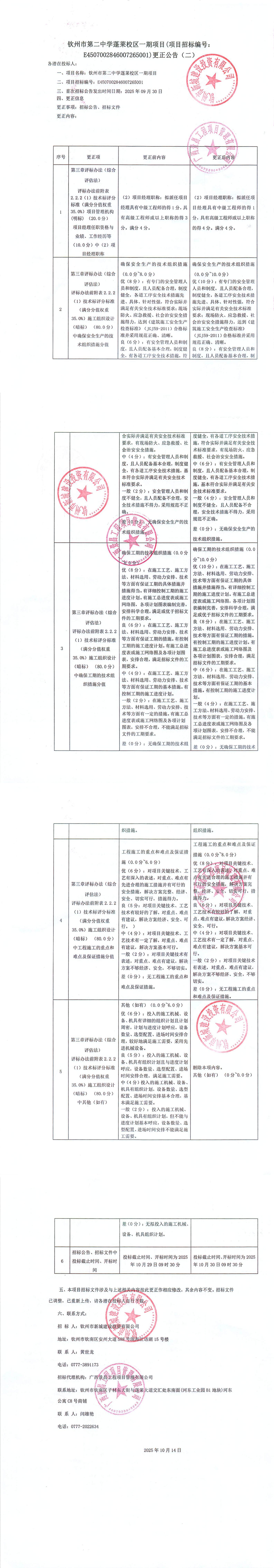 钦州市第二中学蓬莱校区一期项目(项目招标编号:E4507002846007265001)更正公告(二)