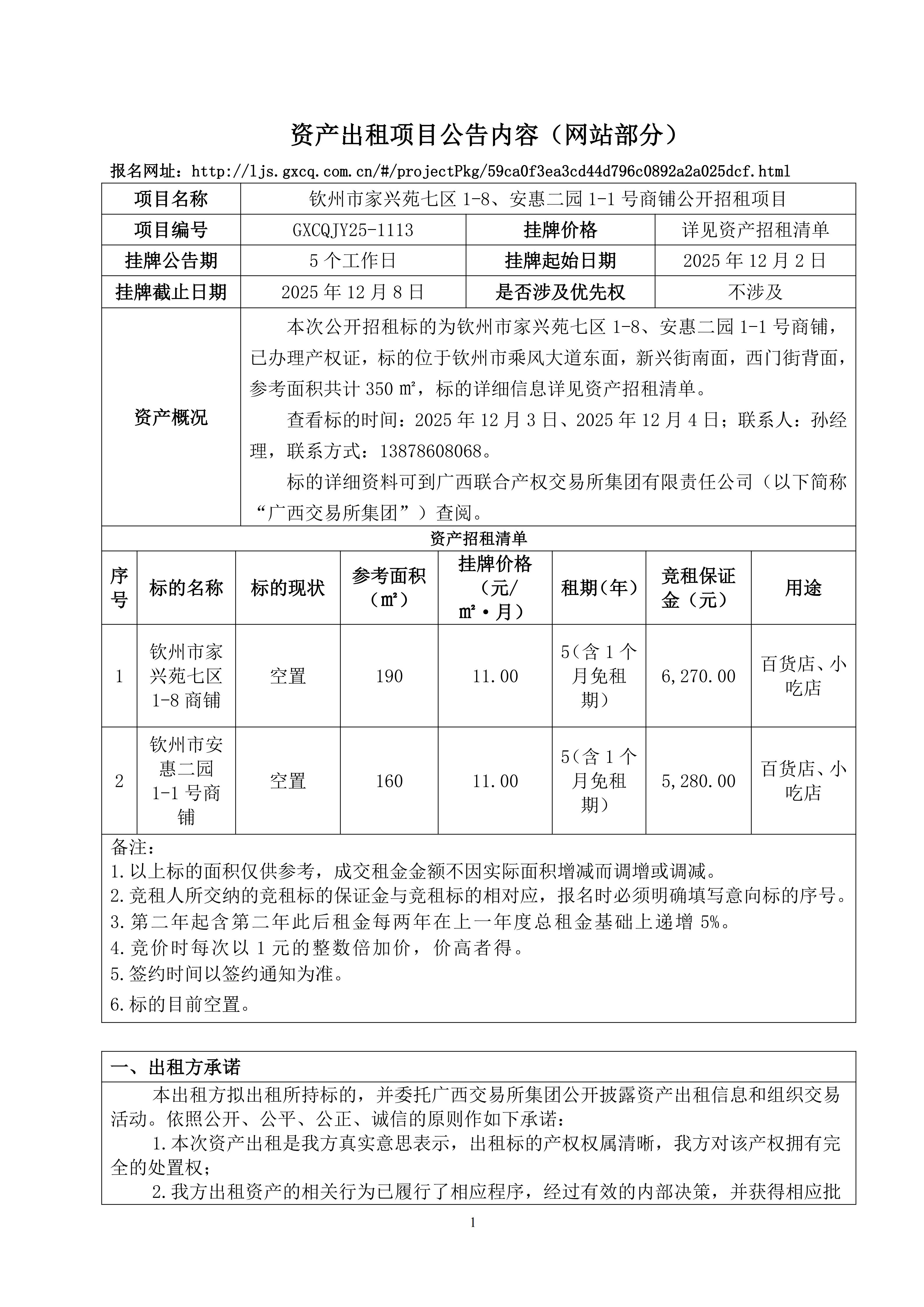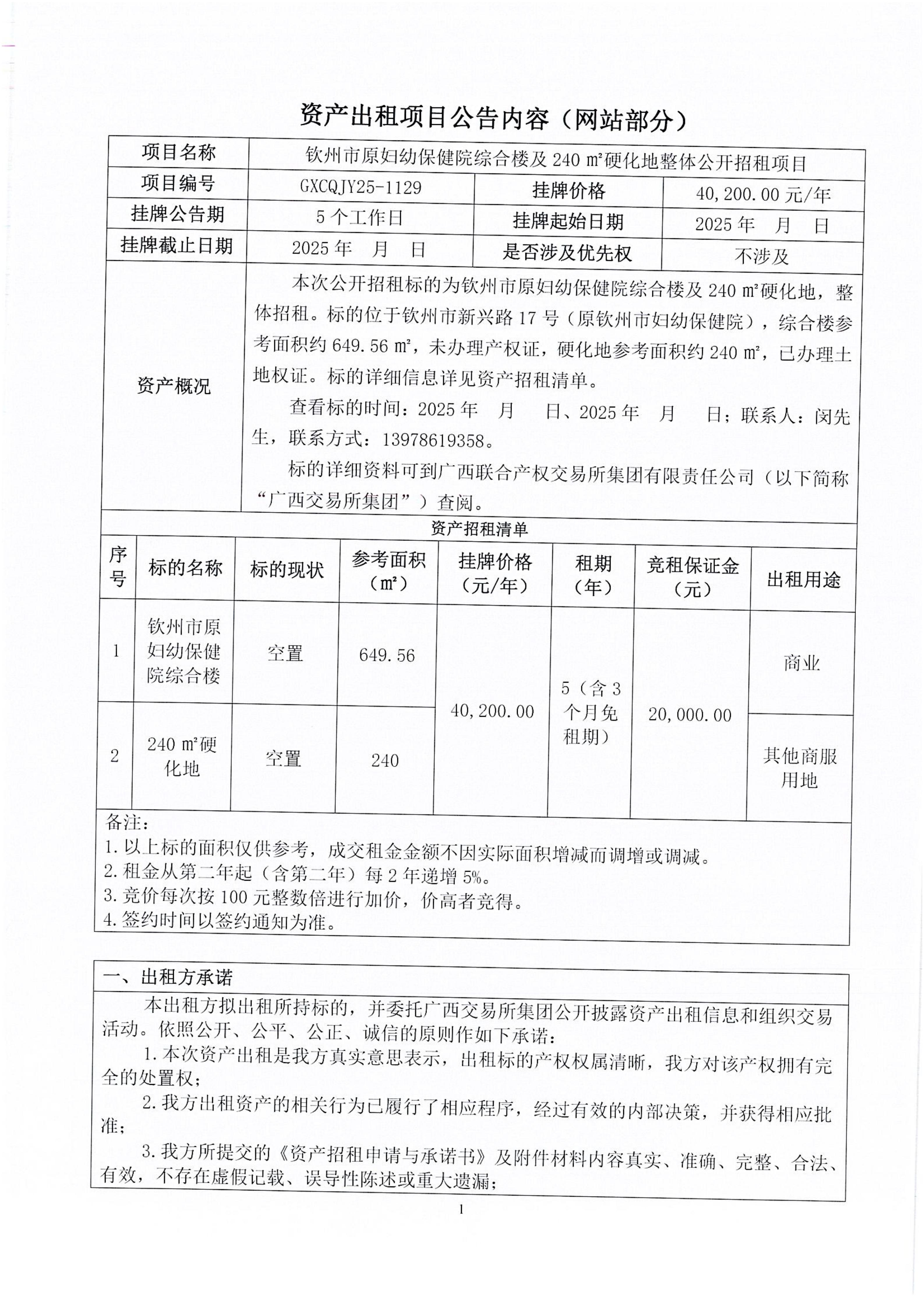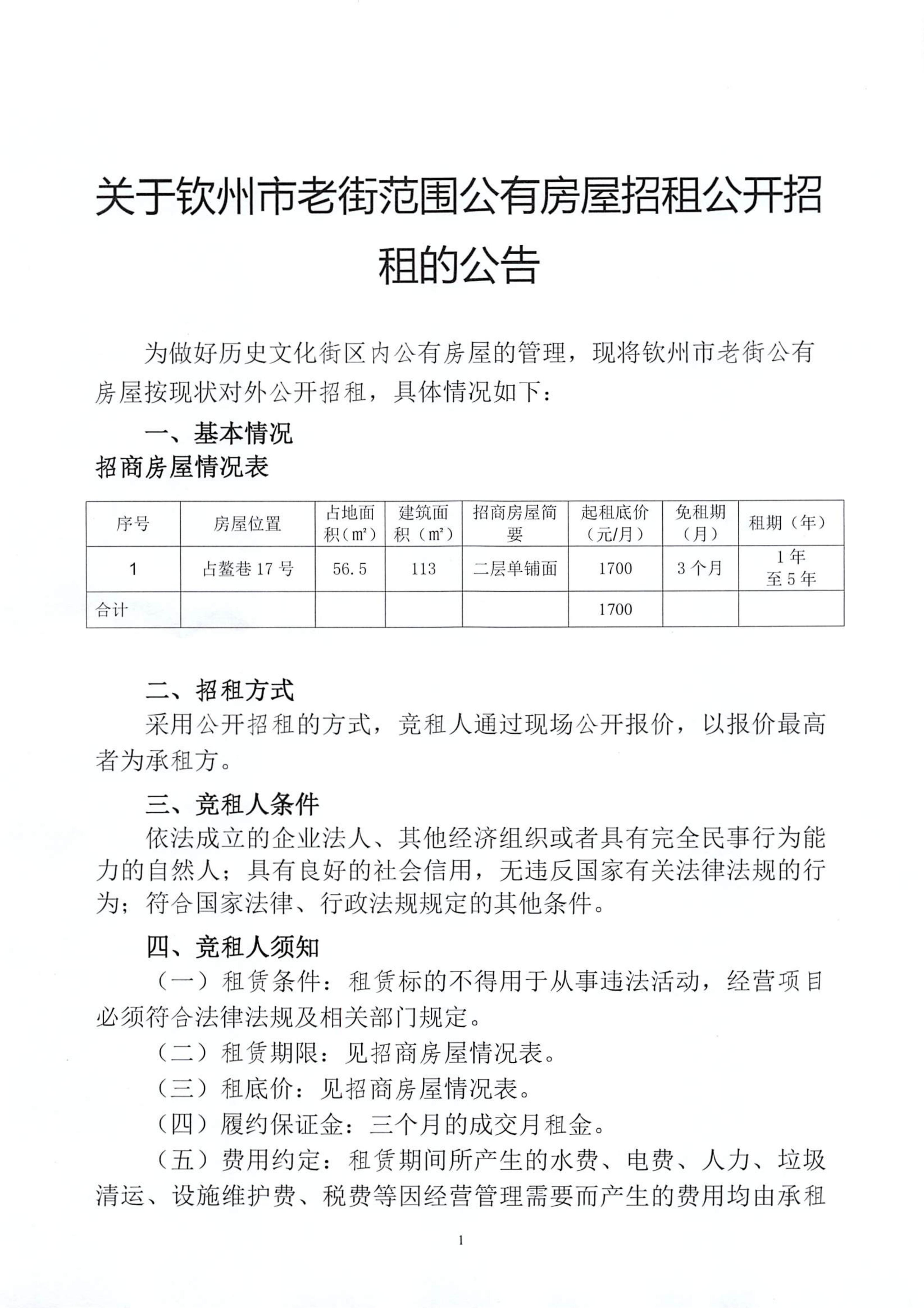 关于钦州市老街范围公有房屋招租公开招租的公告