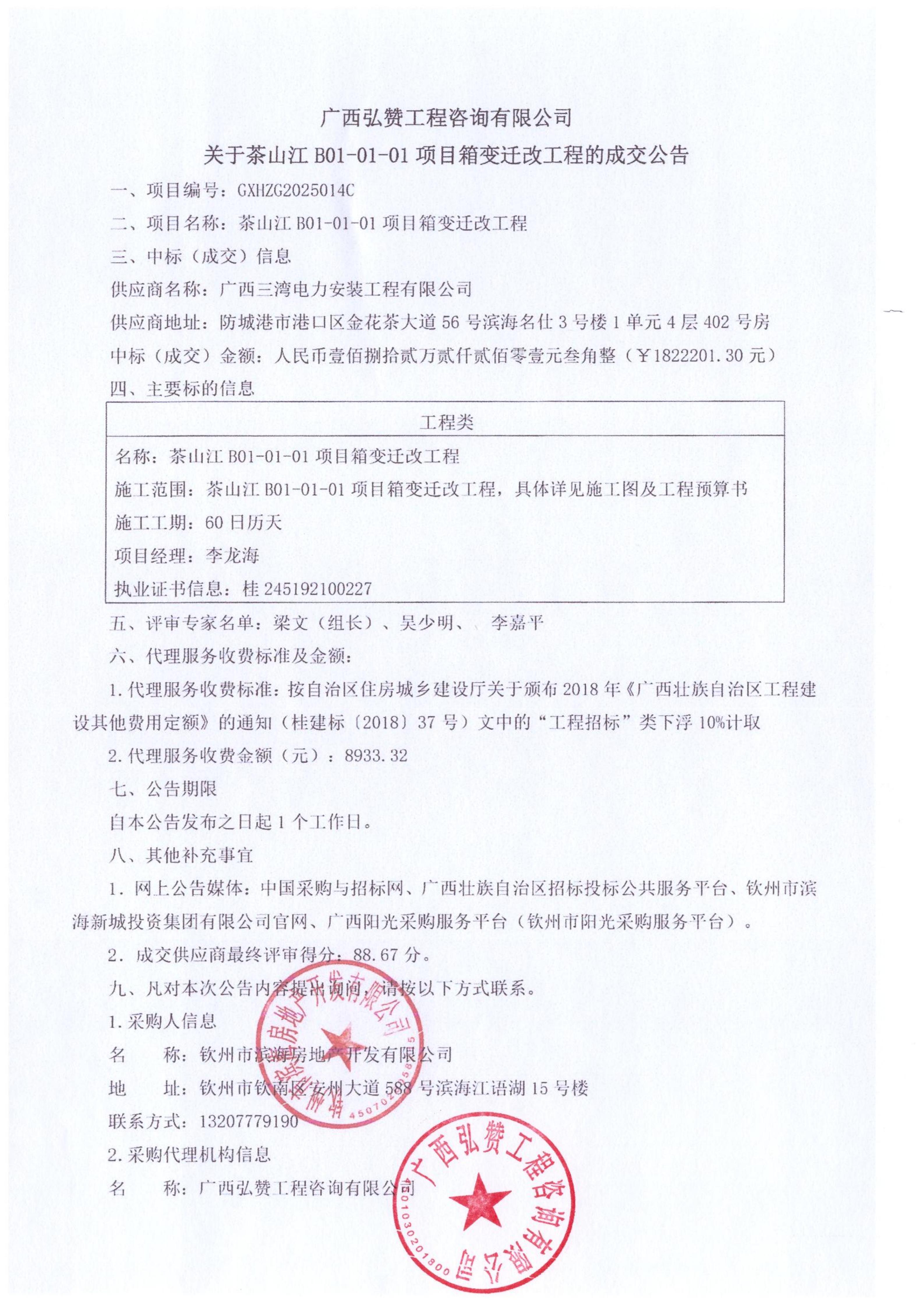 关于钦州市第二中学蓬莱校区范围内10kV线路迁改工程(项目编号:XZZBQZ202509637C)成交结果公告