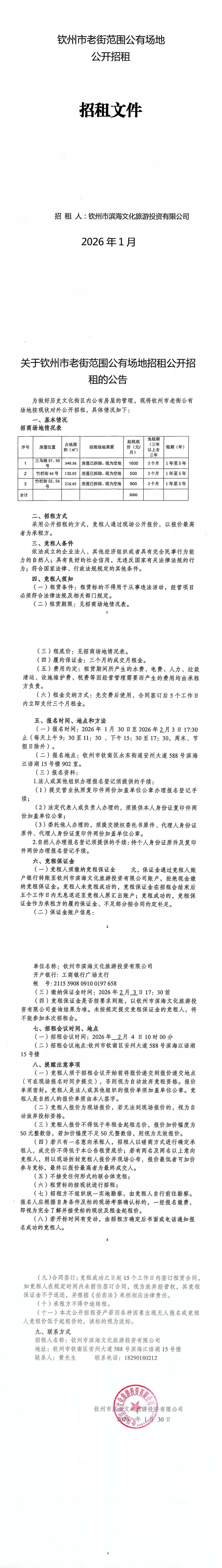 钦州市滨海文化旅游投资有限公司关于钦州市老街范围2处房屋公开招租结果公示