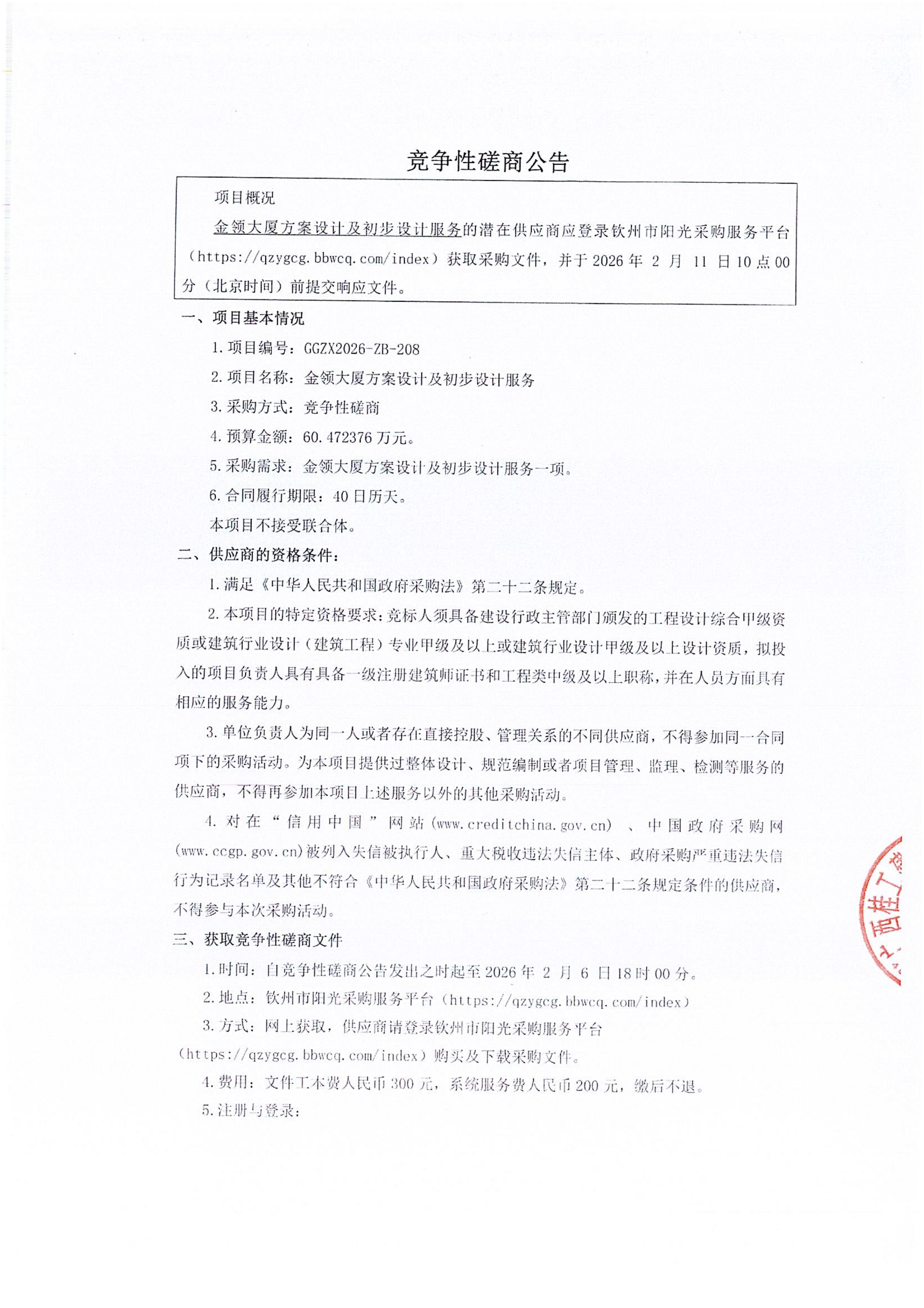 钦州北部湾大学大门商业街地块项日监理更正公告(一)