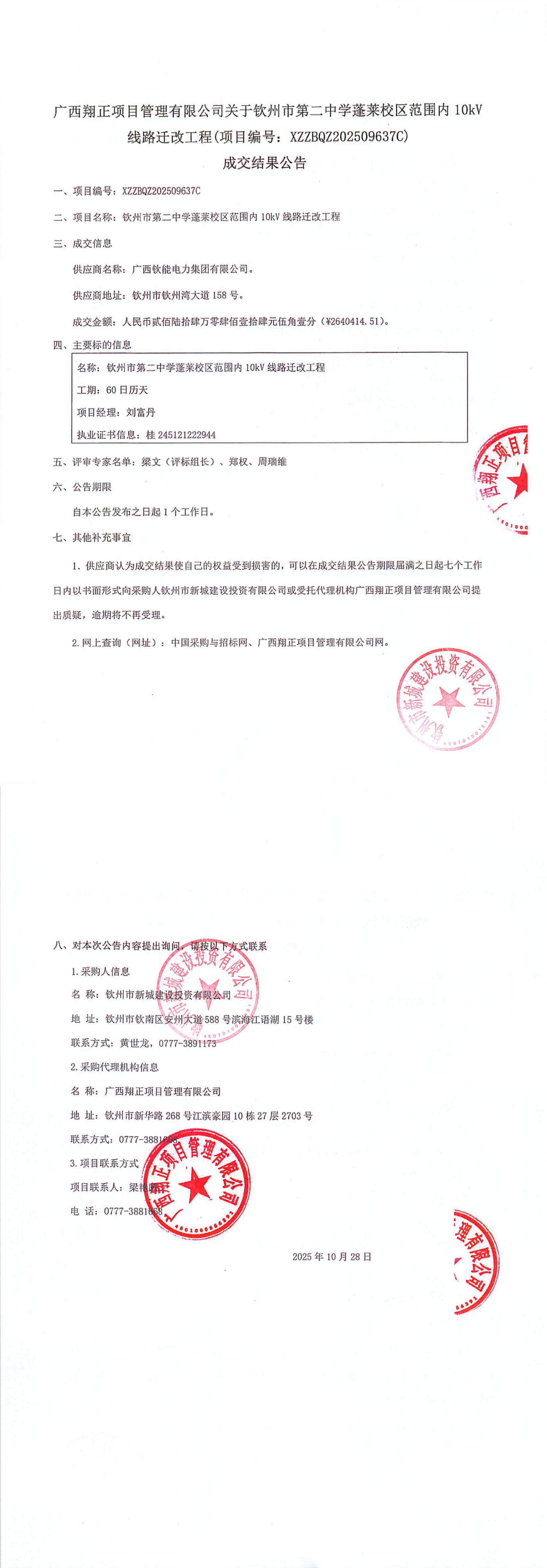钦州市第二中学蓬莱校区范围内10kV线路迁改工程(项目编号: XZZB...