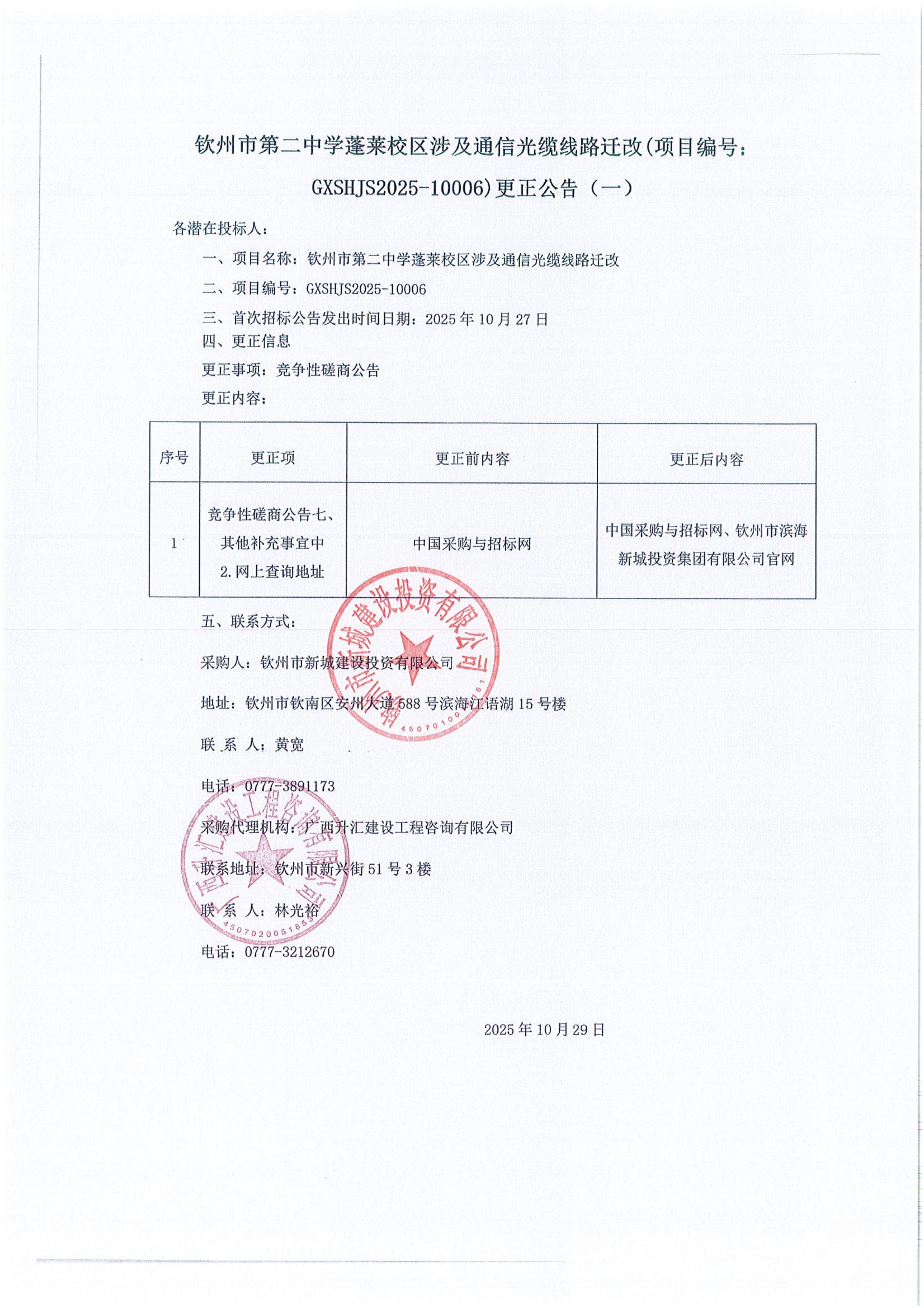 关于钦州市第二中学蓬莱校区涉及通信光缆线路迁改的竞争性磋商公告