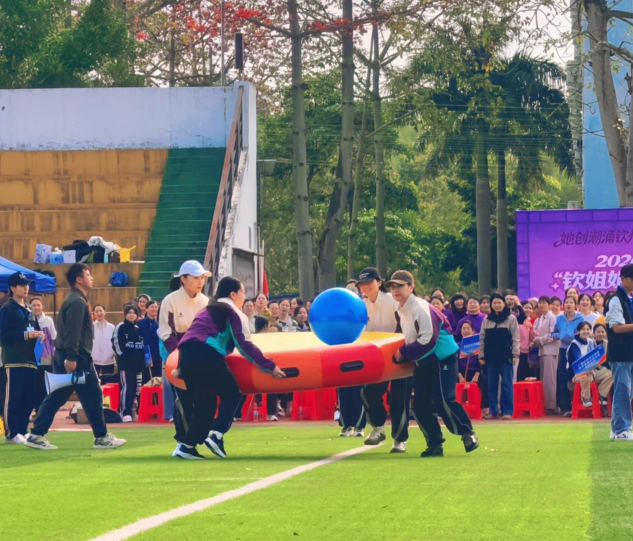 赛时,集团公司参赛的女职工们精神抖擞,全力拼搏,竞风采耀芳华。在《扬帆跃马启新航》项目中,大家步调一致、并肩向前,紧握道具配合默契,伴着呐喊声稳步冲刺,用整齐的步伐展现团队的凝聚力;《凝心聚力齐奋进》项目里,面对考验协作的竞赛环节,队员们心往一处想、劲往一处使,有人喊着口号把控节奏,有人全力配合衔接动作,即便中途遇到小挑战,也迅速调整状态、互帮互助,绝不轻言放弃。从起跑冲刺到协作闯关,每一个环节都凝聚着大家的汗水,每一次突破都彰显着滨海巾帼的勇毅争先的奋进姿态,成为春日赛场上一道靓丽的风景线。