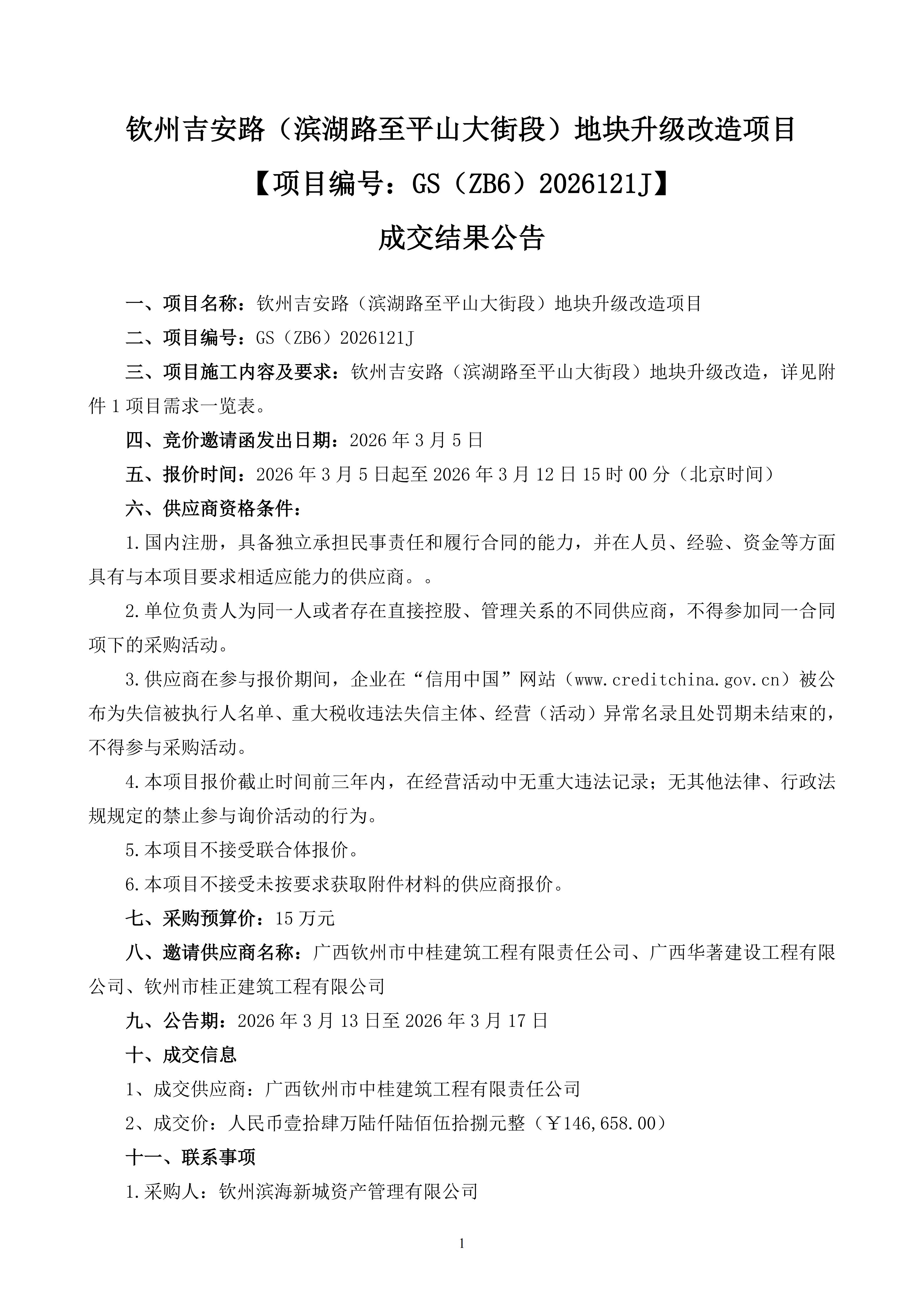钦州吉安路(滨湖路至平山大街段)地块升级改造项目 【项目编号:GS(Z...