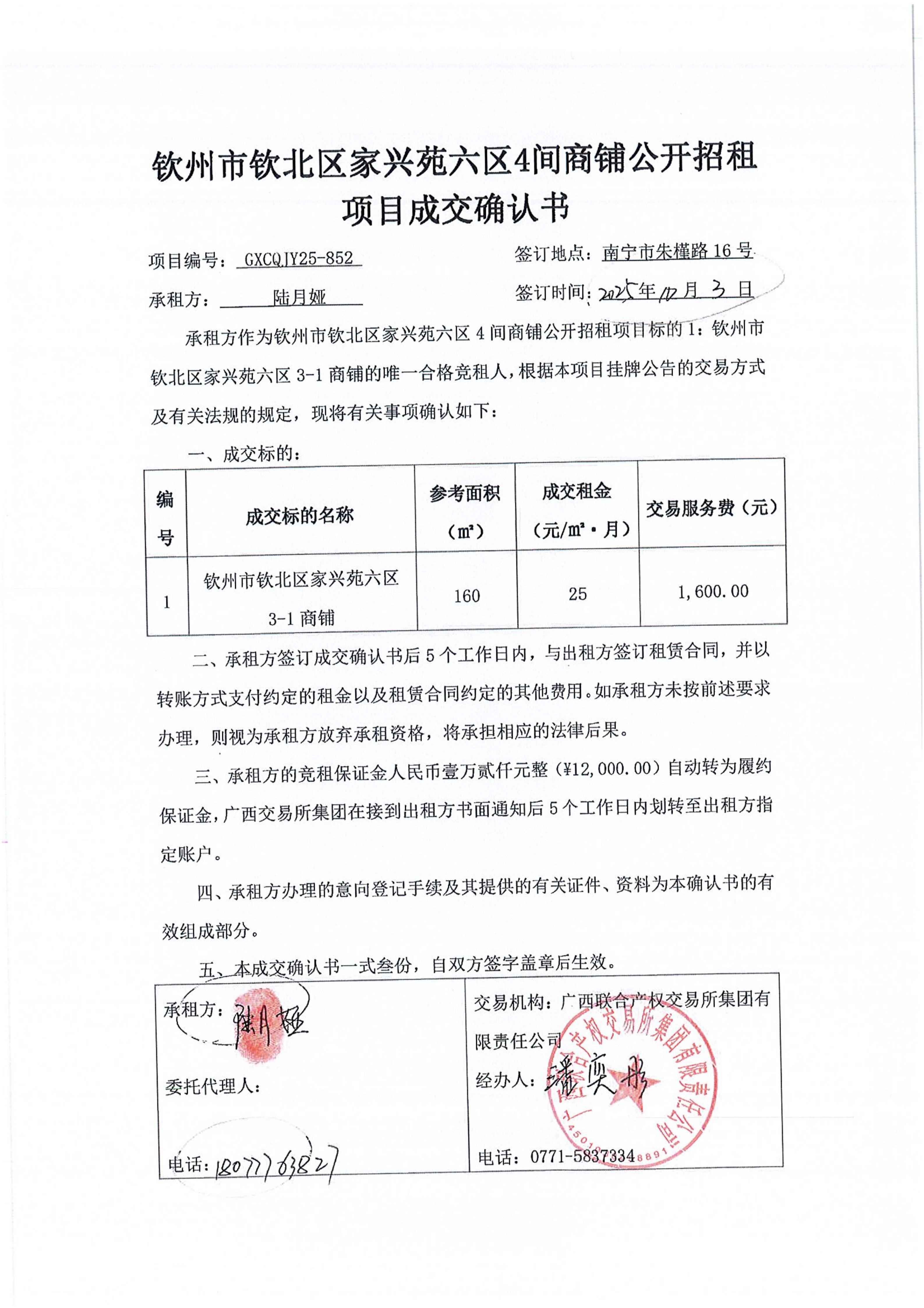 一、项目名称:宾阳县公共配送中心劳务派遣服务项目 二、项目编号:GXJT-2025-QZZC002 三、成交信息: 序号 入围供应商名称 管理费报价 (元/人/月) 地址 1 广西高校联盟教育投资集团有限公司 80.00 南宁市江南区同乐大道53号泉港·江南企业总部6号厂...