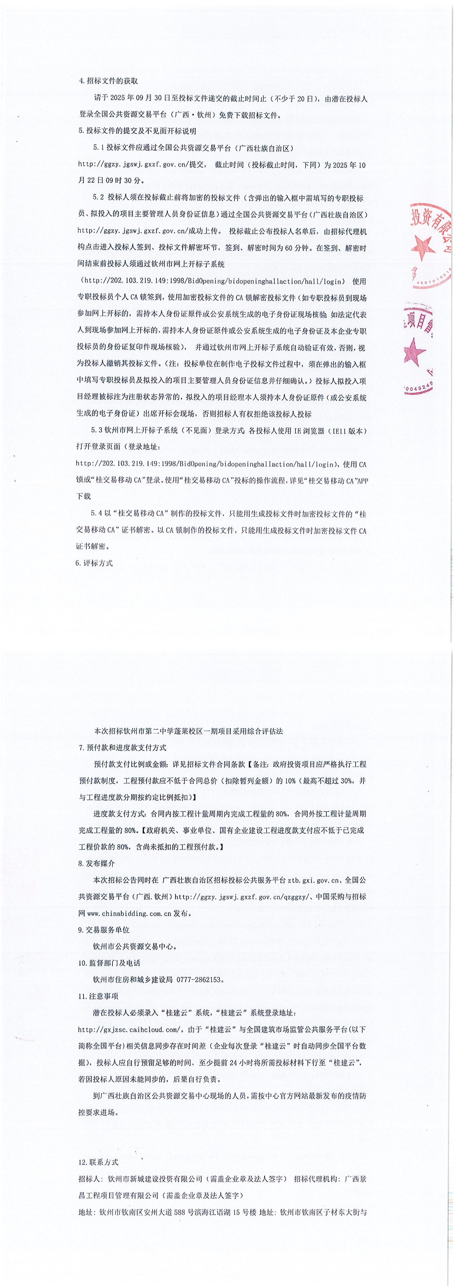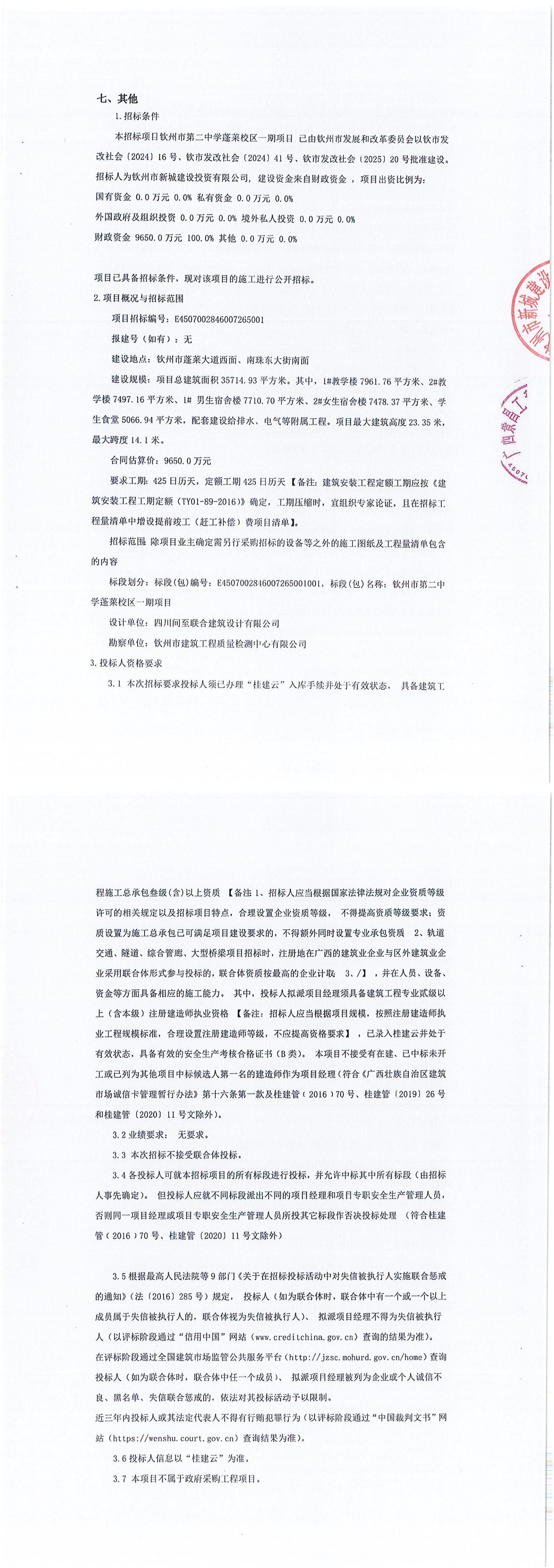 钦州市第二中学蓬莱校区一期项目施工招标公告