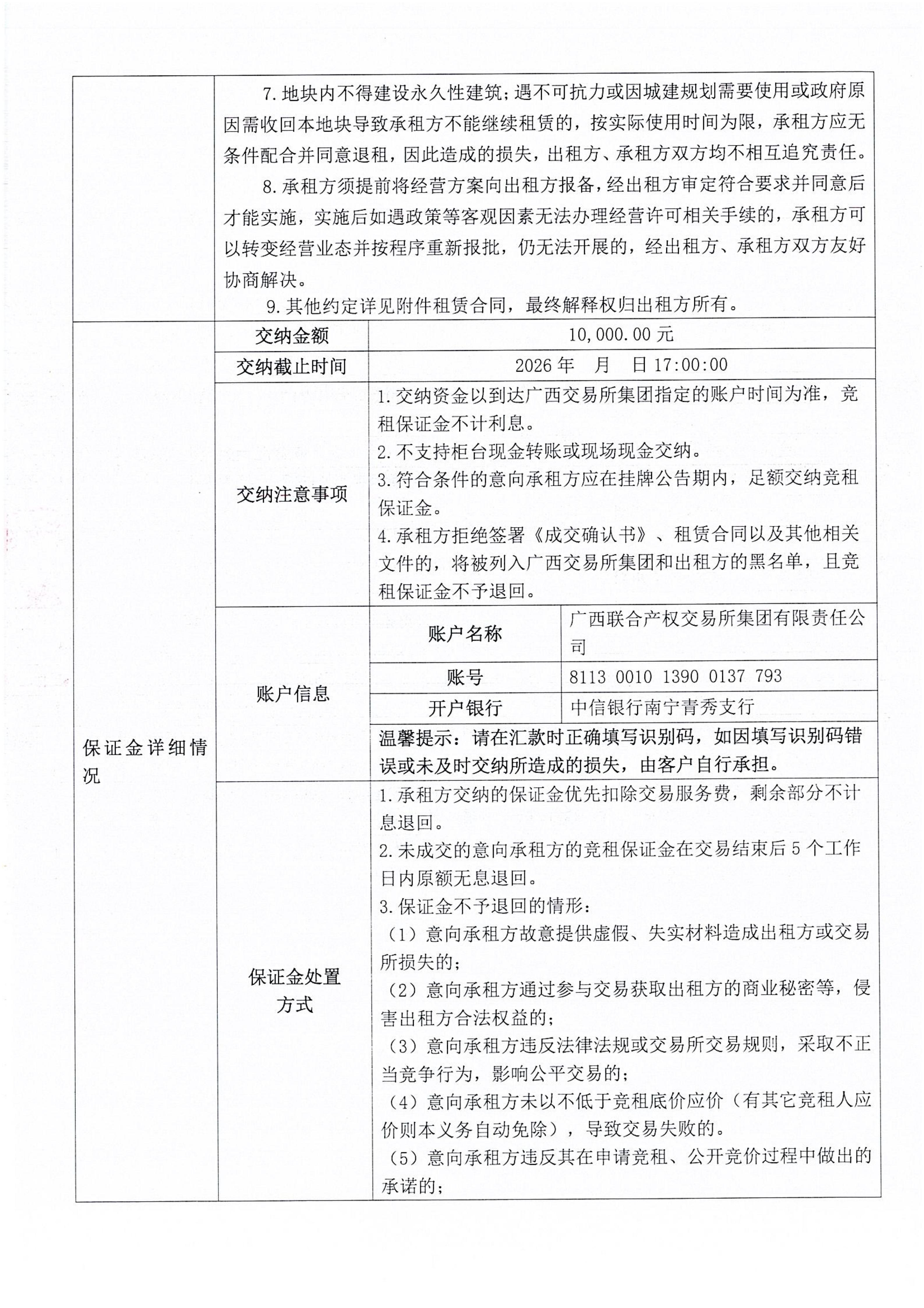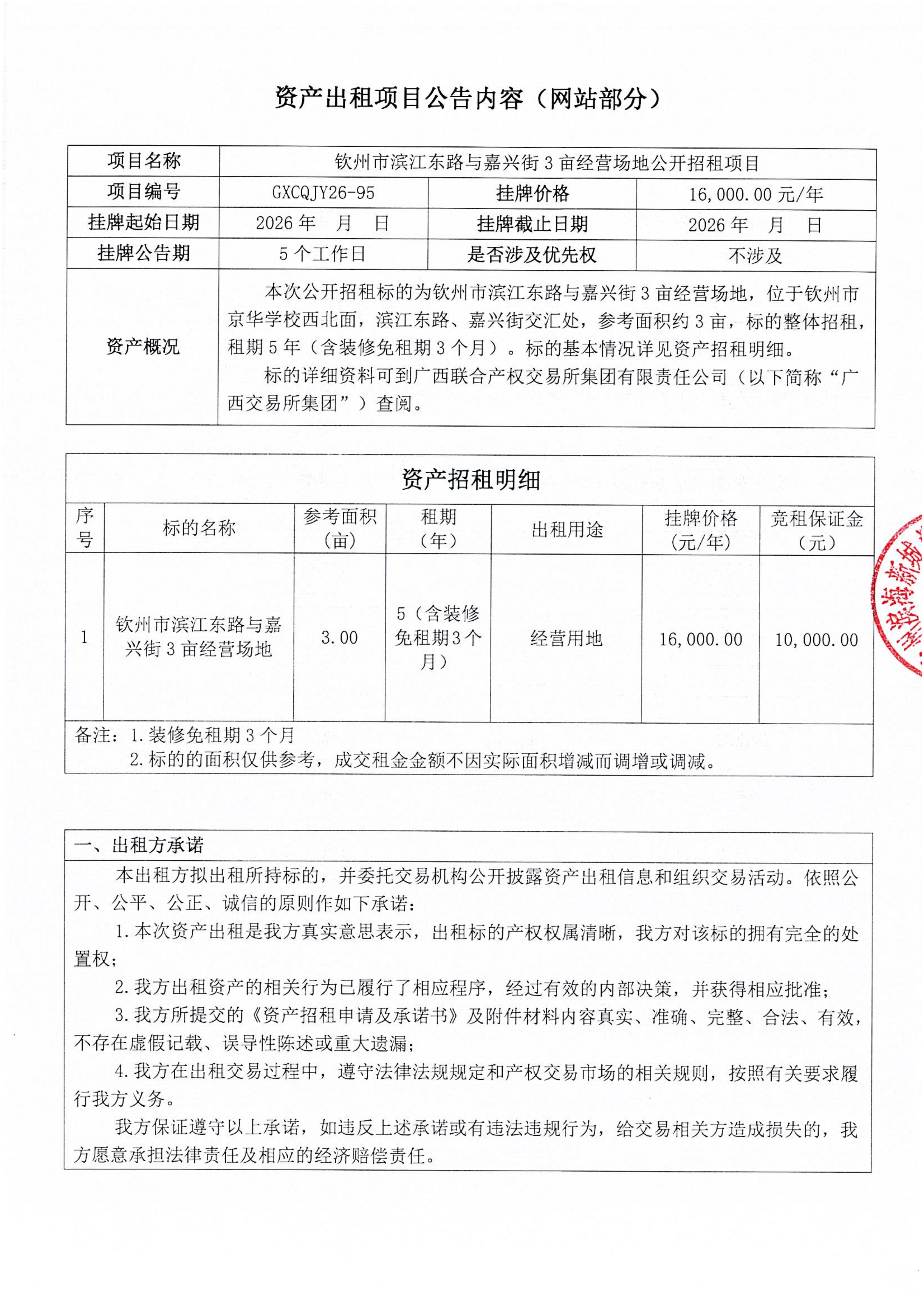 钦州市滨江东路与嘉兴街3亩经营场地公开招租项目