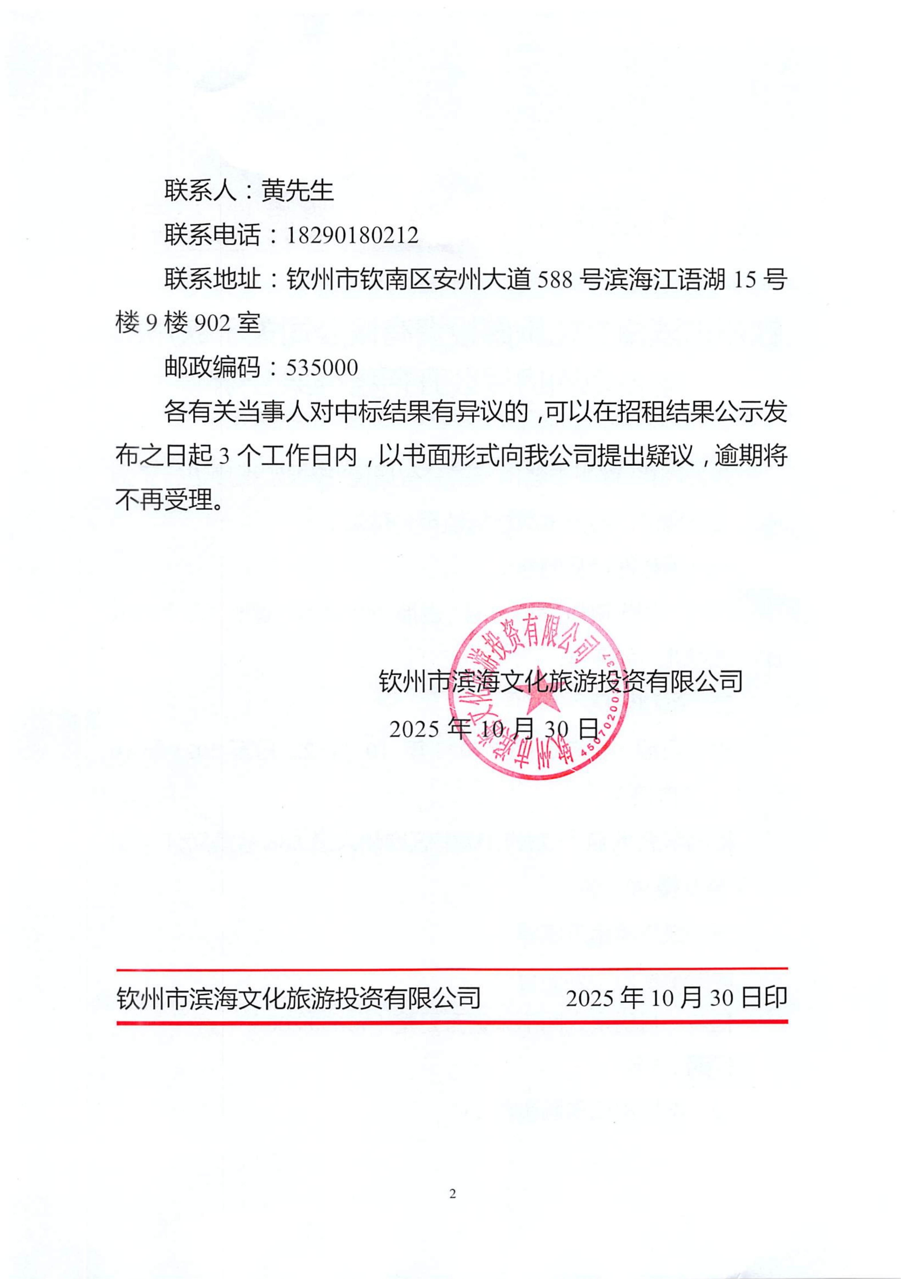 钦州市滨海文化旅游投资有限公司关于钦州市老街范围房屋公开招租结果公示