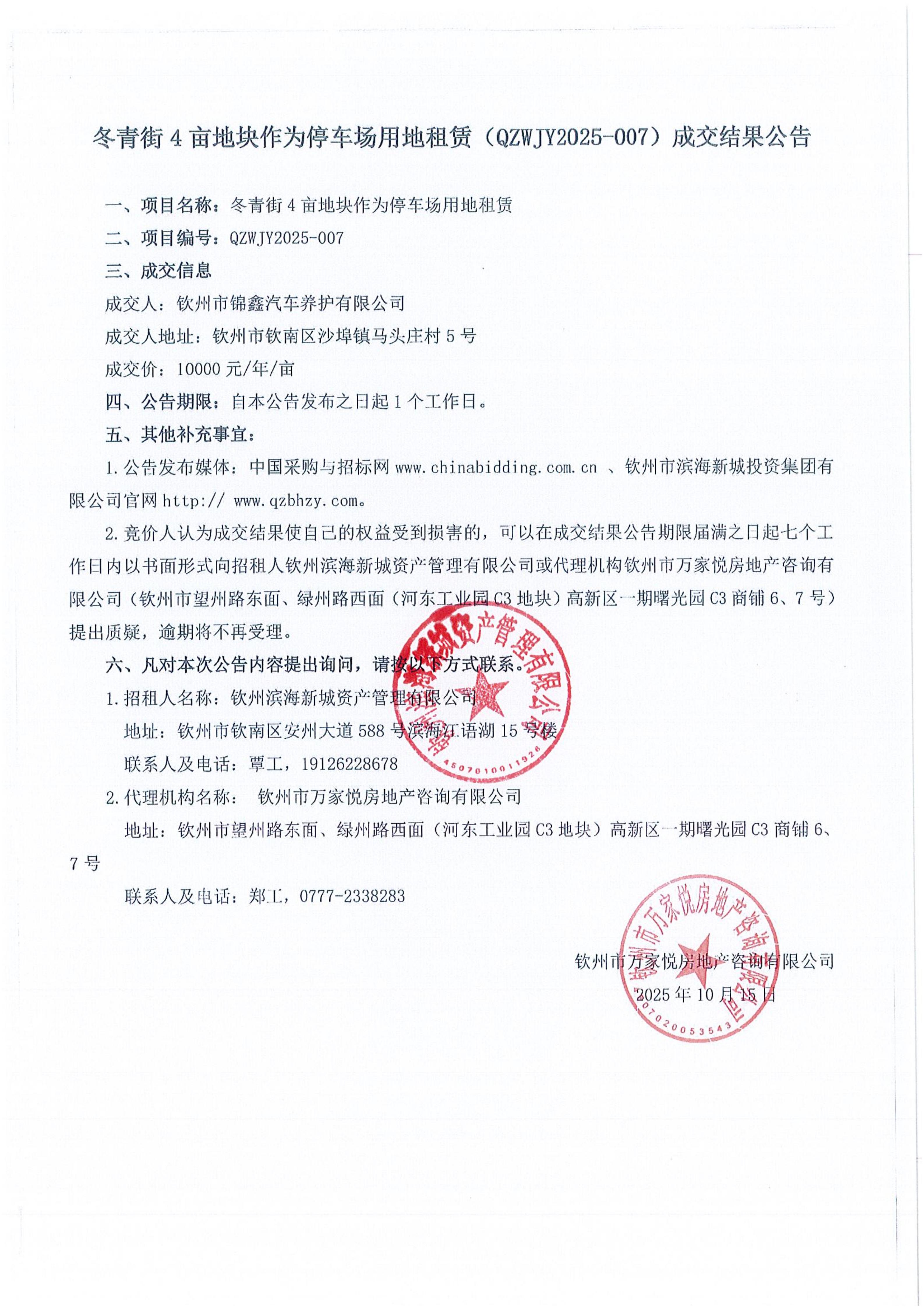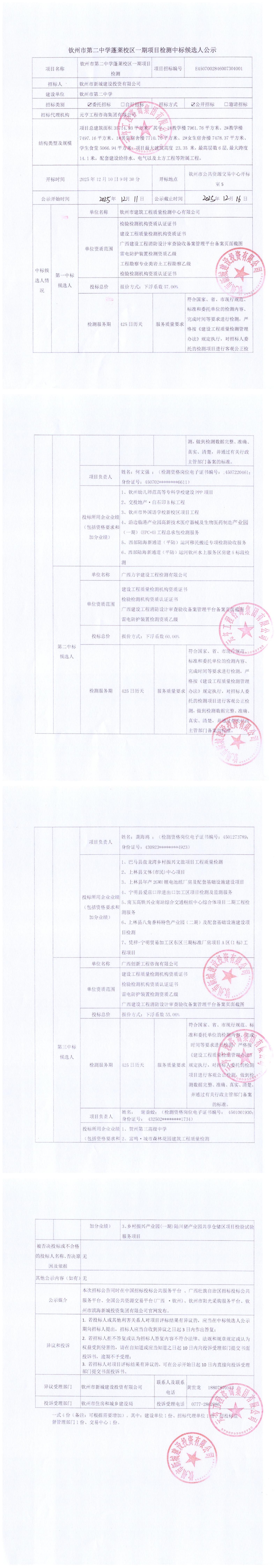 一、项目名称:宾阳县公共配送中心劳务派遣服务项目 二、项目编号:GXJT-2025-QZZC002 三、成交信息: 序号 入围供应商名称 管理费报价 (元/人/月) 地址 1 广西高校联盟教育投资集团有限公司 80.00 南宁市江南区同乐大道53号泉港·江南企业总部6号厂...