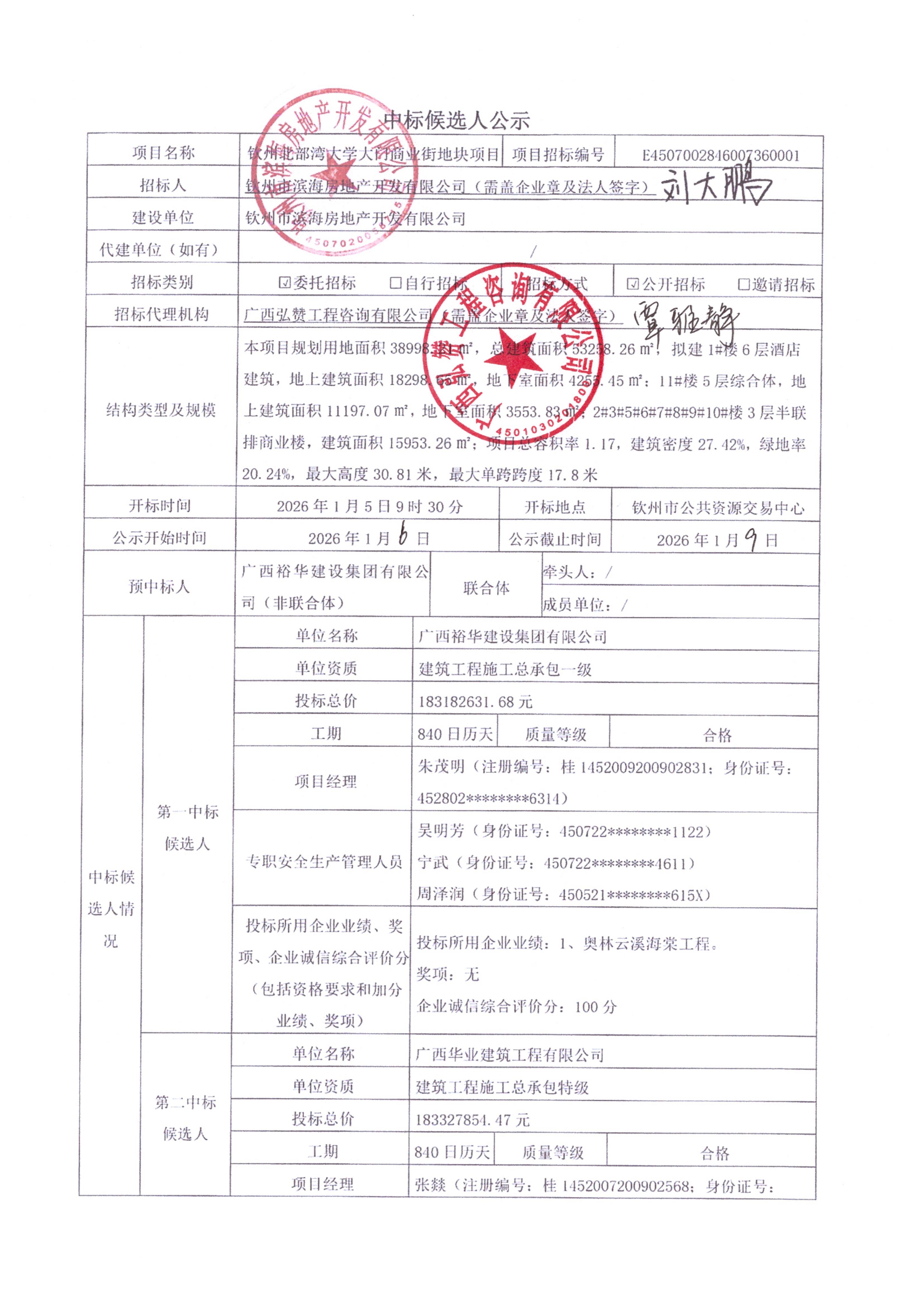 钦州北部湾大学大门商业街地块项目中标候选人公示