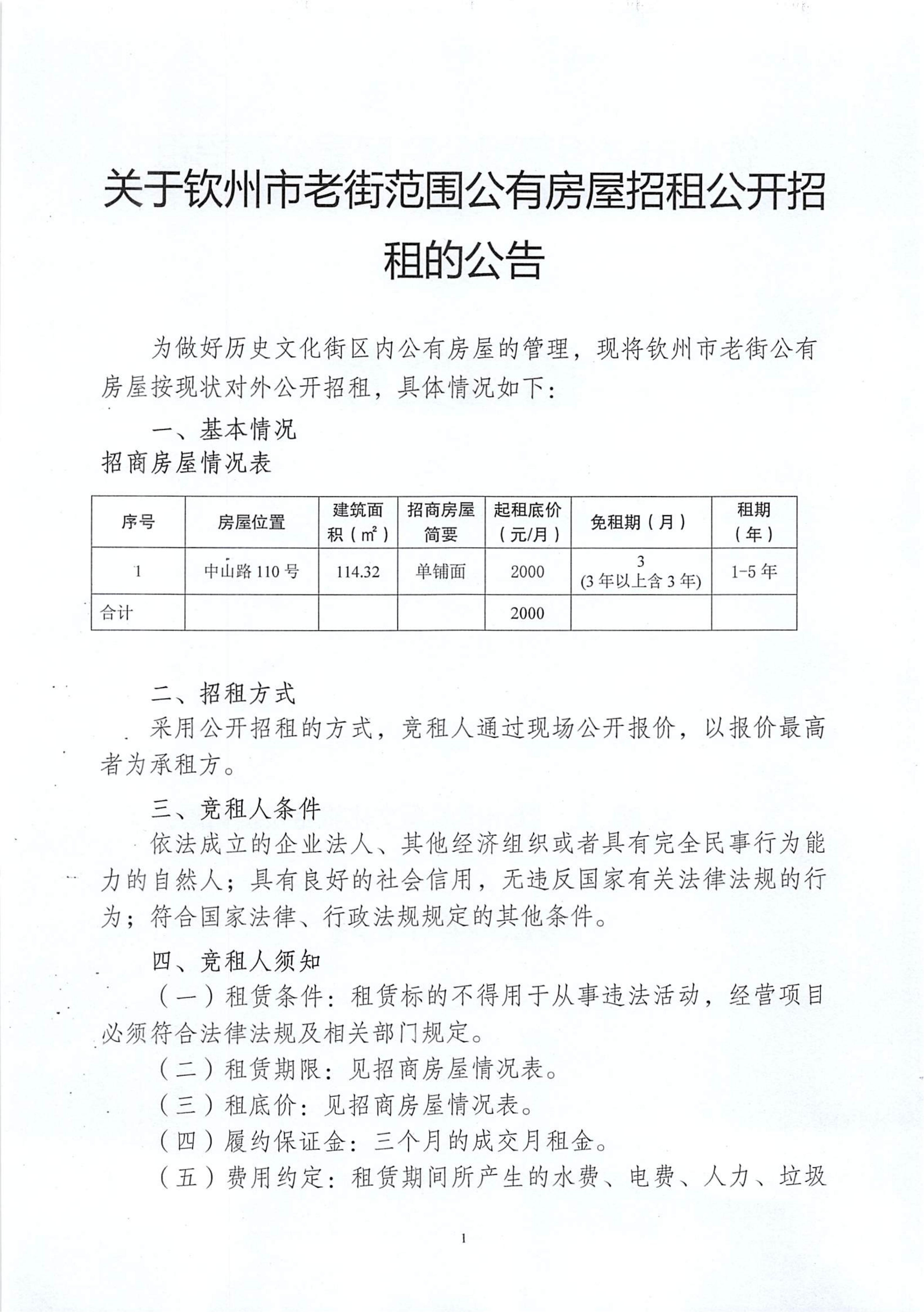 关于钦州市老街范围公有房屋招租公开招租的公告