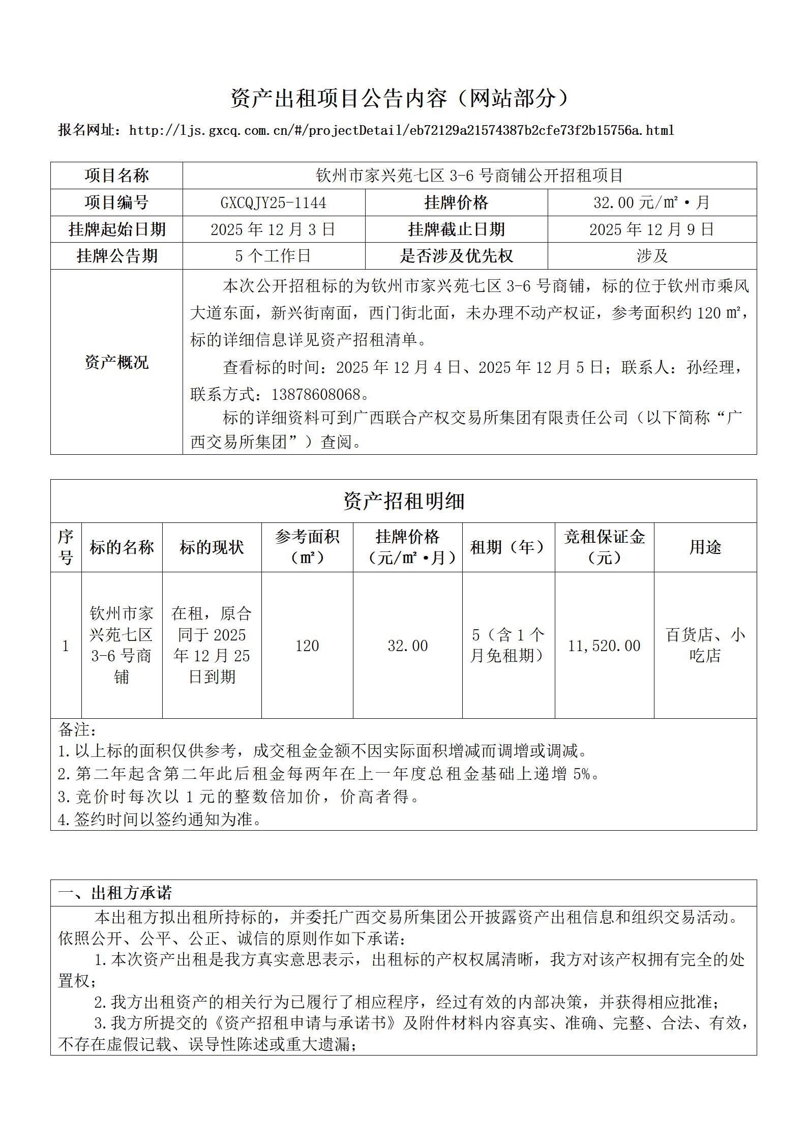 钦州市家兴苑七区3-6号商铺公开招租项目