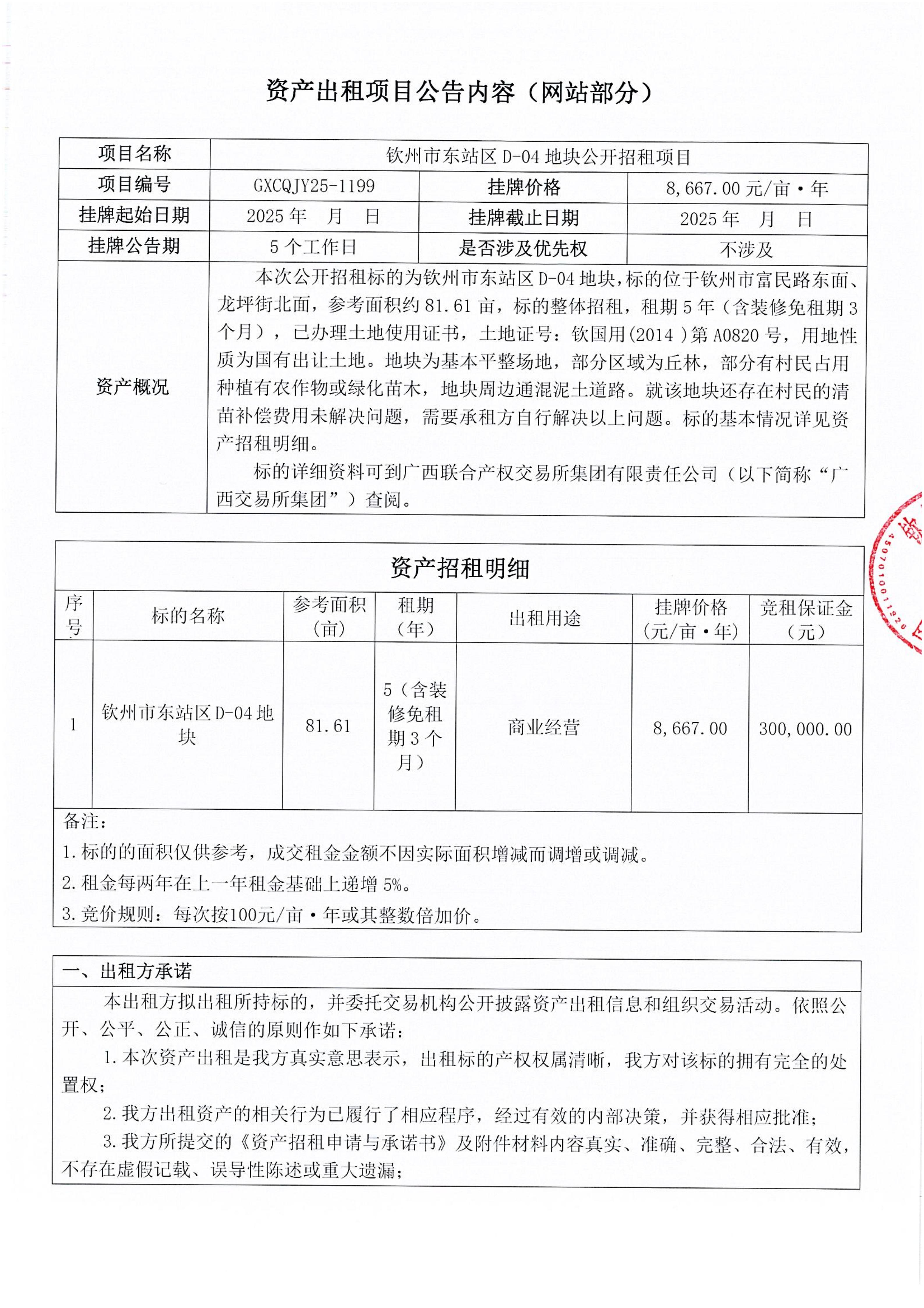 钦州市东站区D-04地块公开招租项目