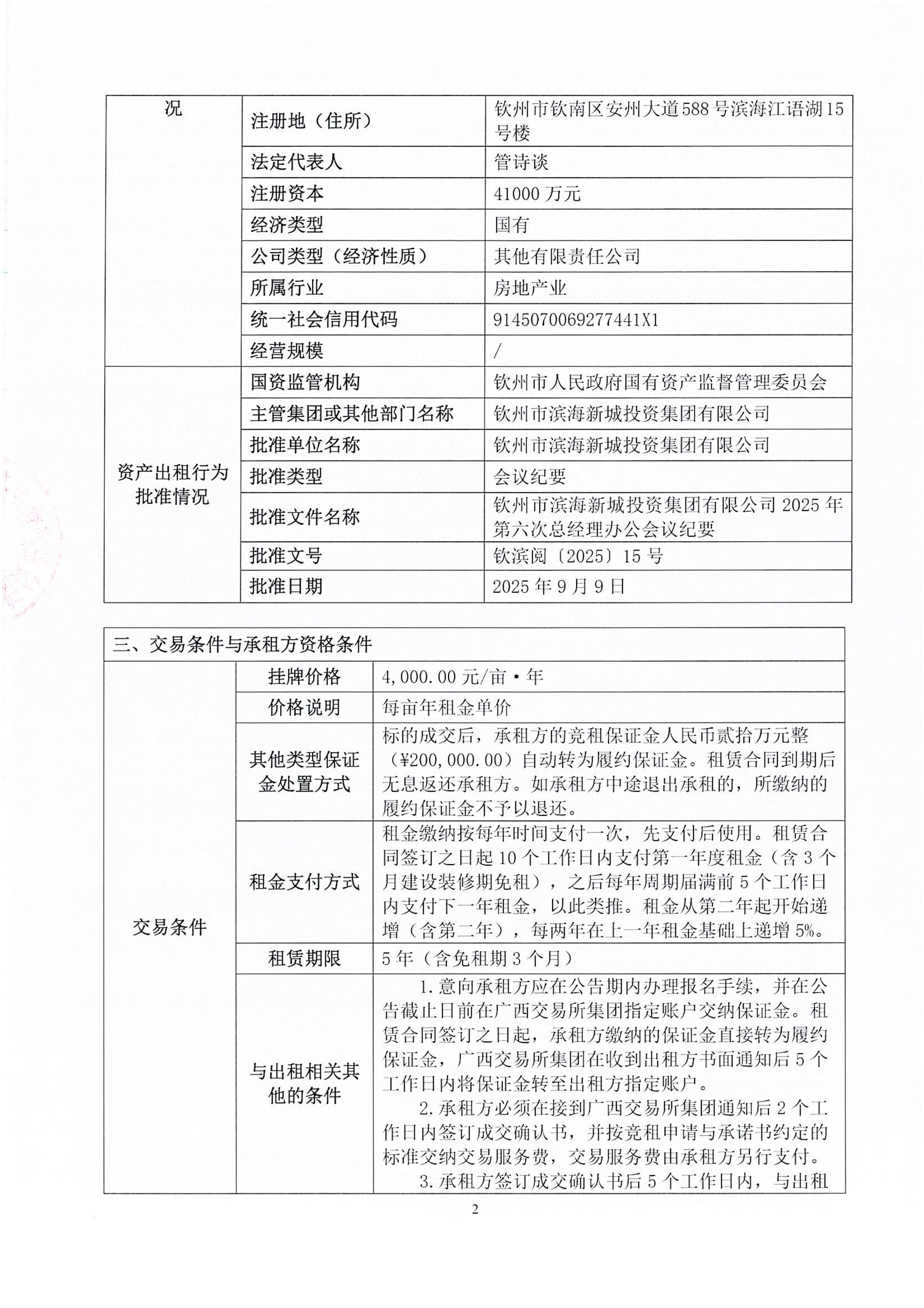 钦州市钦南区扬帆大道与龙海路交汇处西北角地块公开招租项目