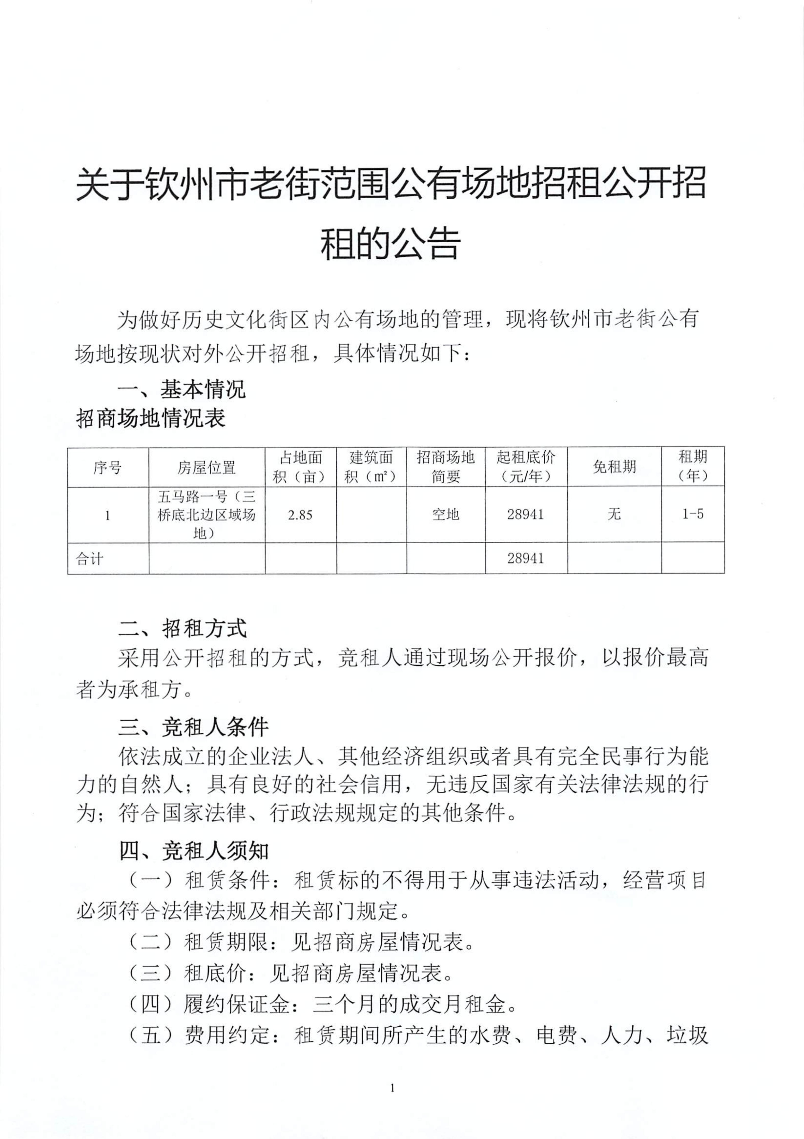 关于钦州市老街范围公有场地公开招租的公告(五马路一号三桥底北边区域场地)