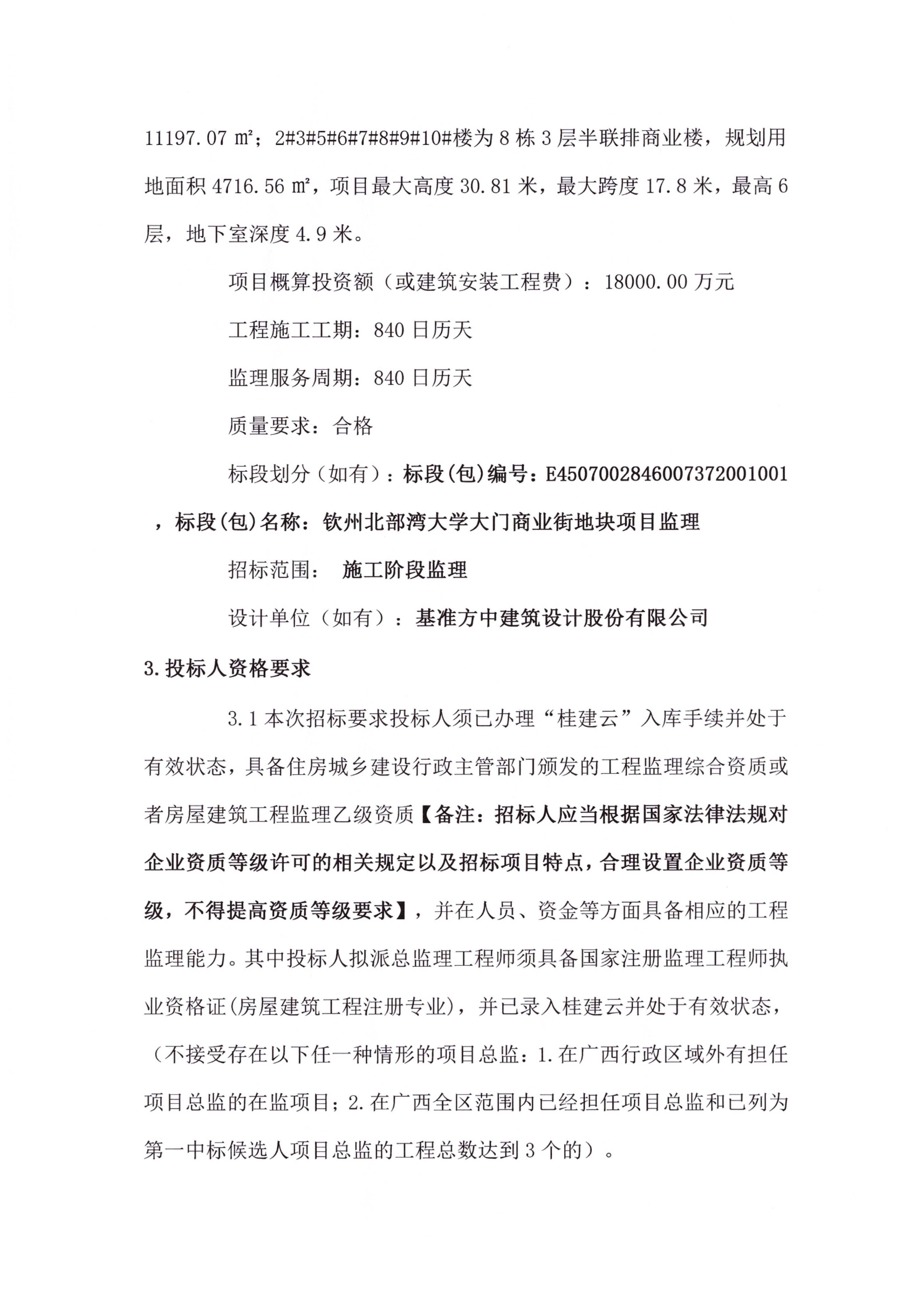 钦州北部湾大学大门商业街地块项目监理招标公告